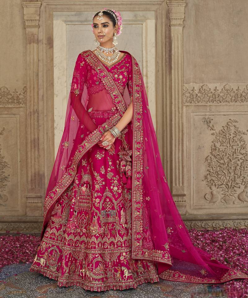 Pink premium silk bridal lehenga with hand embroidery & zarkan work for wedding