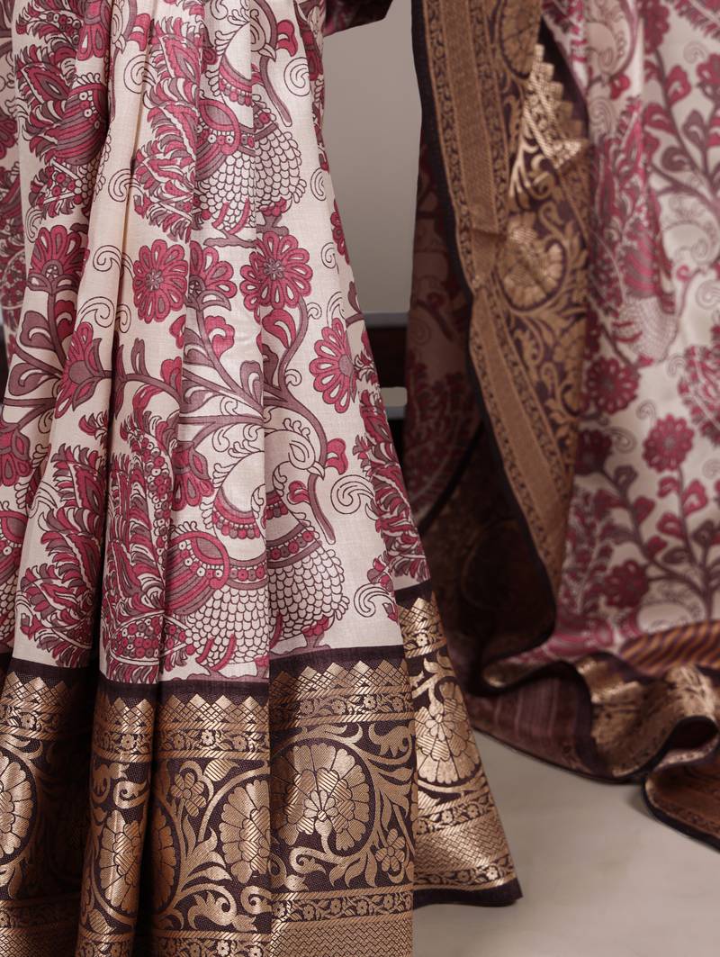 | Product Name | Pink Printed Tasar Art Silk Saree With Shimmering Viscose Border | |