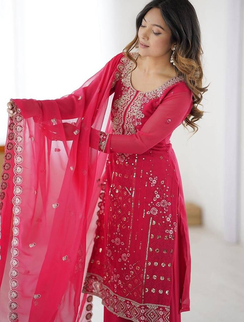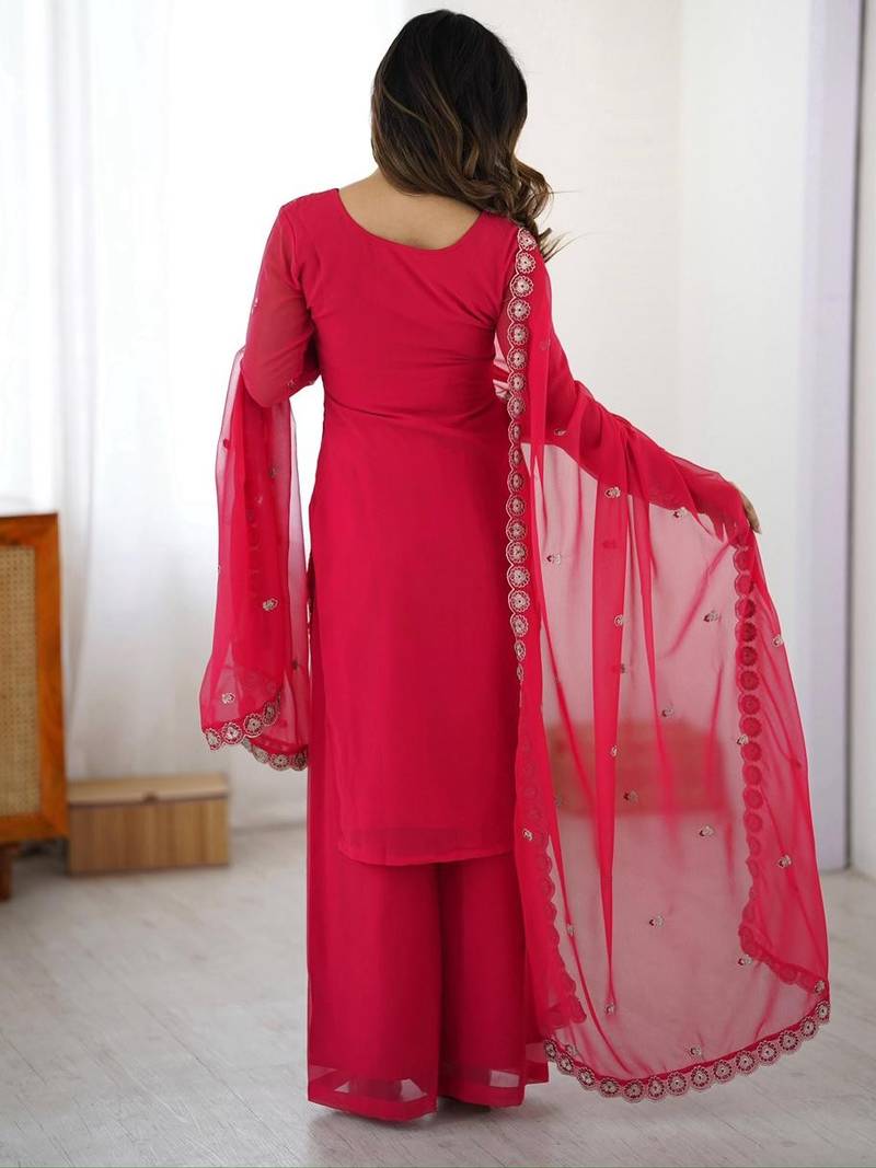 | Product Name | Pink Ready To Wear Faux Georgette Top & Plazzo Set With Sequins Work Dupatta | |
