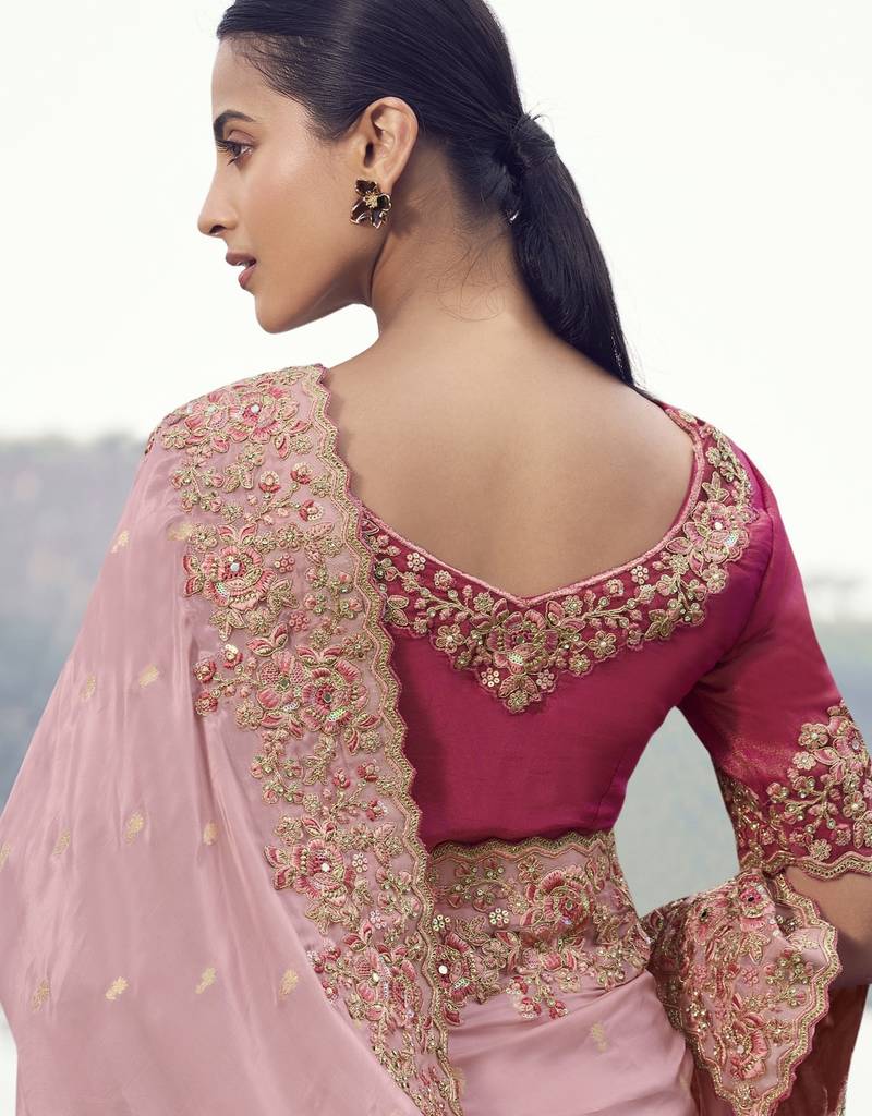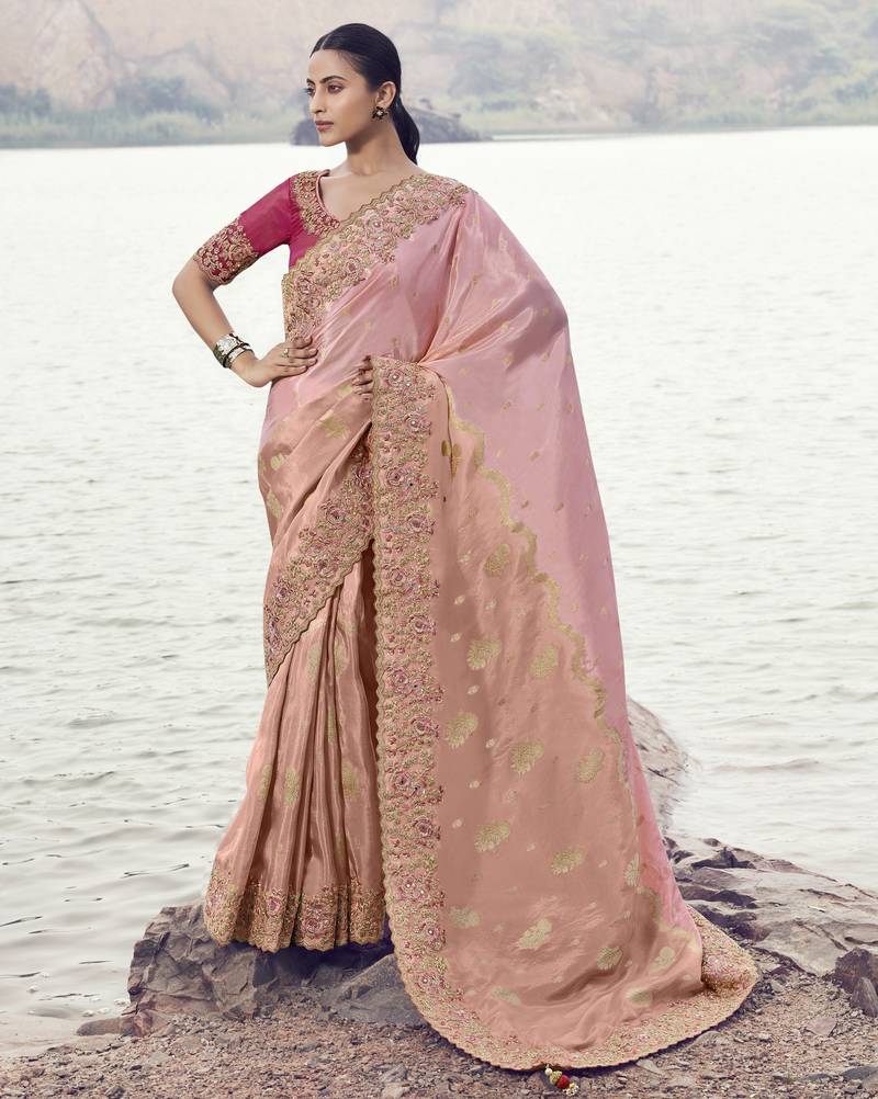 Pink tissue silk blend with organza mix saree & pure tissue blouse lightweight soft wedding saree