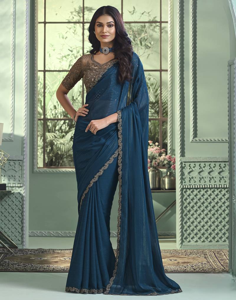 | • | Saree | : | Color- Teal / Fabric- Georgette |