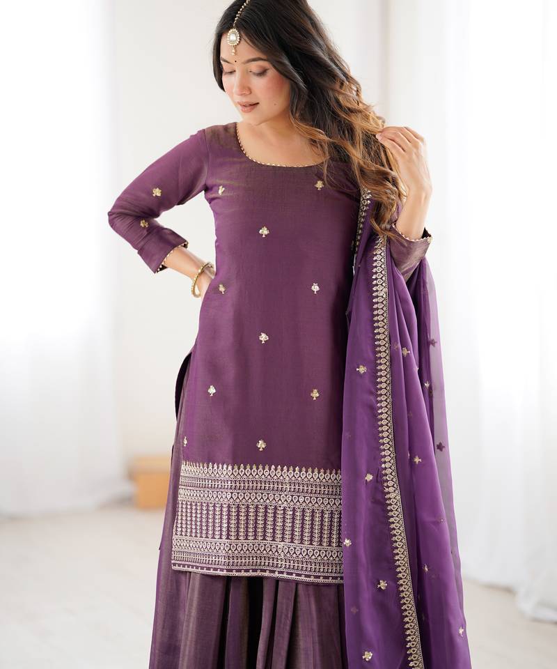 | • | Kameez | : | Color- Purple / Fabric- Silk Blend |