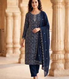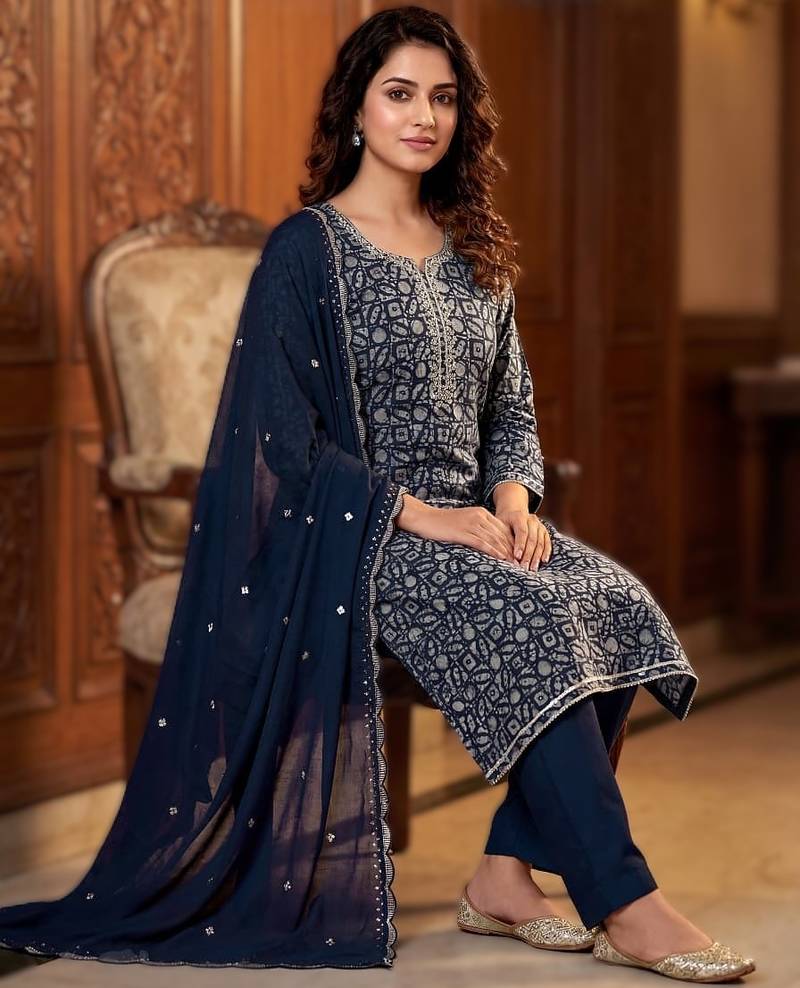 | • | Dupatta | : | Color- Navy Blue / Fabric- Rayon |