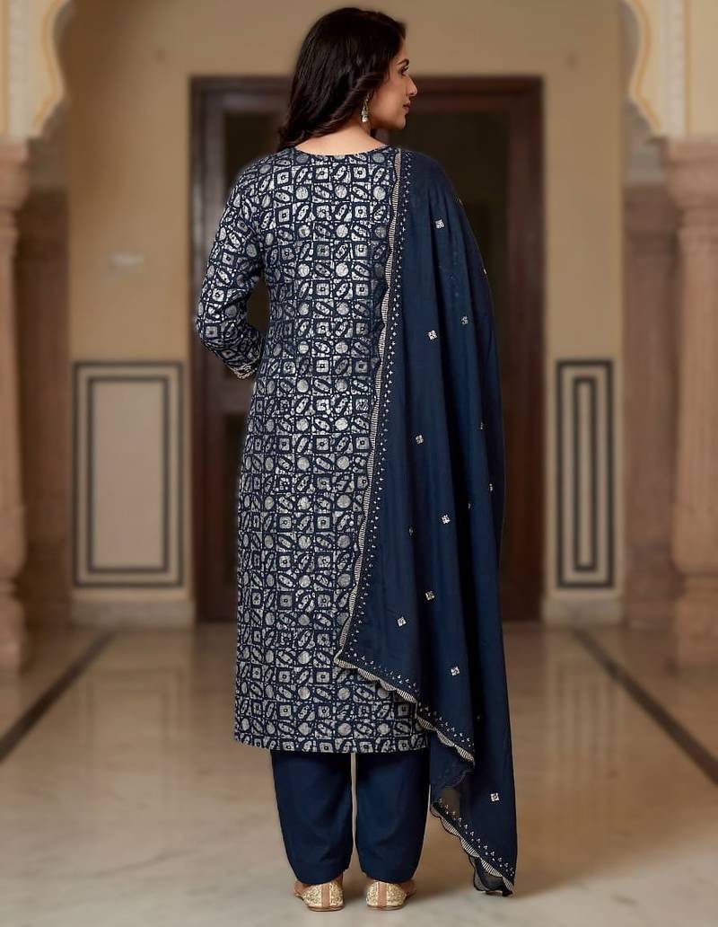| Product Name | Printed Readymade Suit Set With Khatli Work & Chanderi Dupatta | |