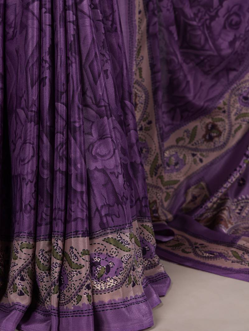 | Product Name | Pruple Printed Crepe Saree With Matching Blouse | |