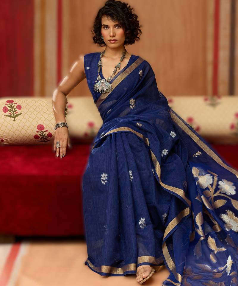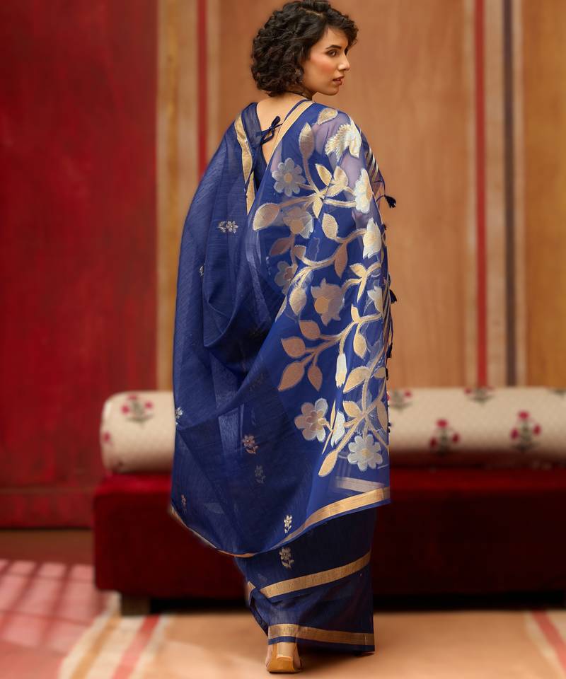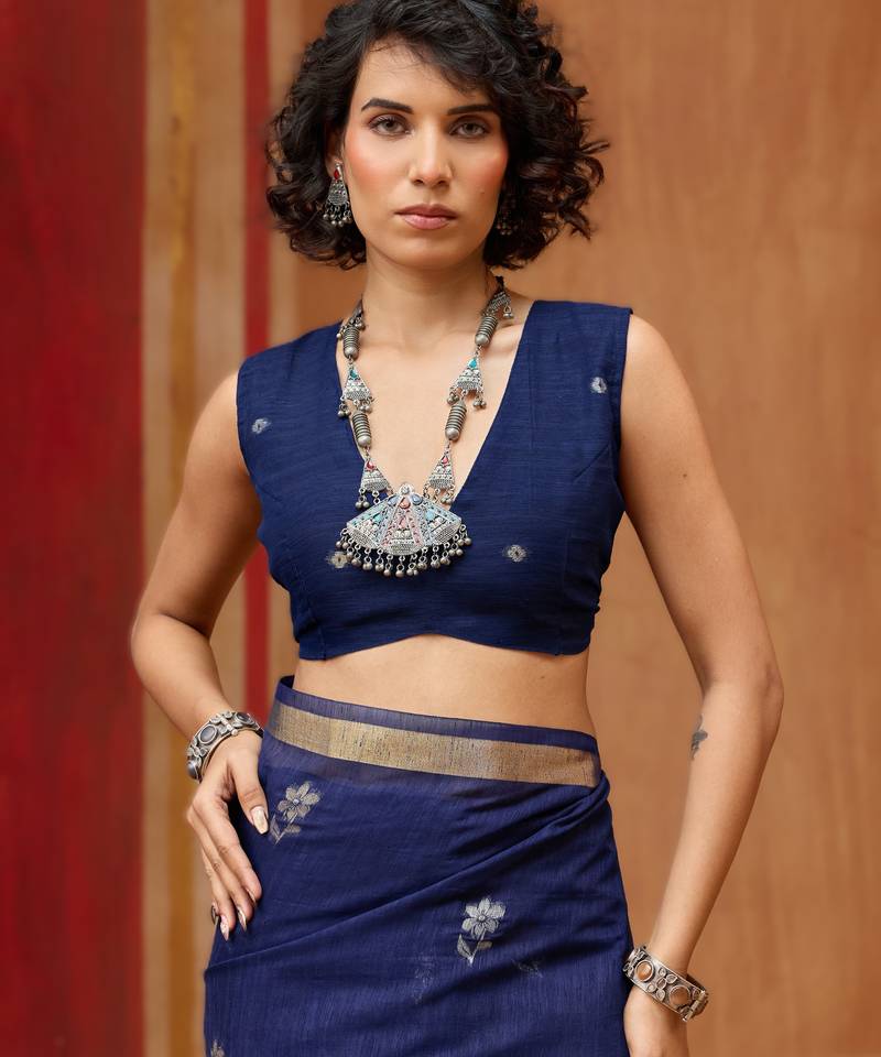 | Product Name | Navy Blue Pure Munga Art Silk Handloom Weaving Saree With Organza Weaving Pallu | |