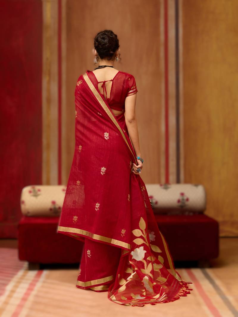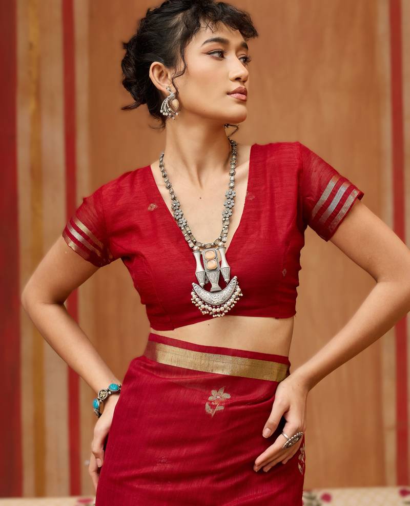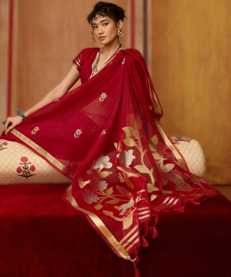 | Product Name | Red Pure Munga Art Silk Handloom Weaving Saree With Organza Weaving Pallu | |