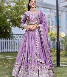 Purple vichitra silk lehenga with embroidery