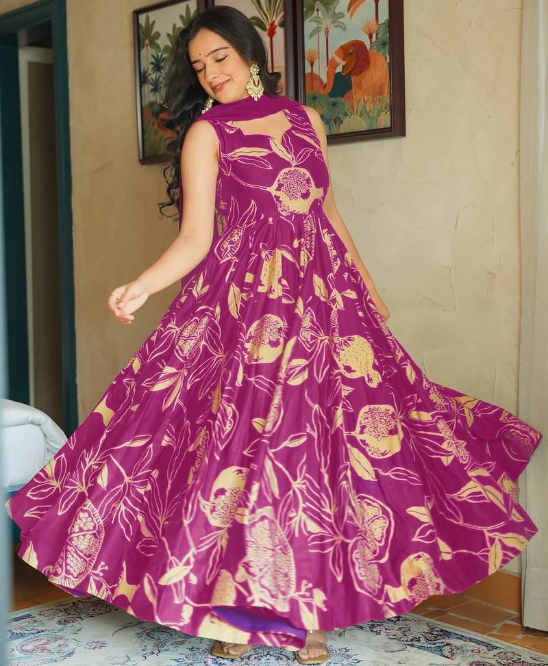 | Product Description | Heavy Rayon Gown Combines Comfort With Sophistication. Featuring Heavy Digital Prints Over Soft Rayon Fabric, This Gown Offers A Graceful 3.5+ Meter Flare For A Flowing Anarkali Look. |