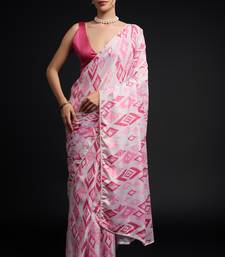 Art silk saree with printed design & pallu lace border, paired with banglori unstitched blouse
