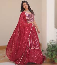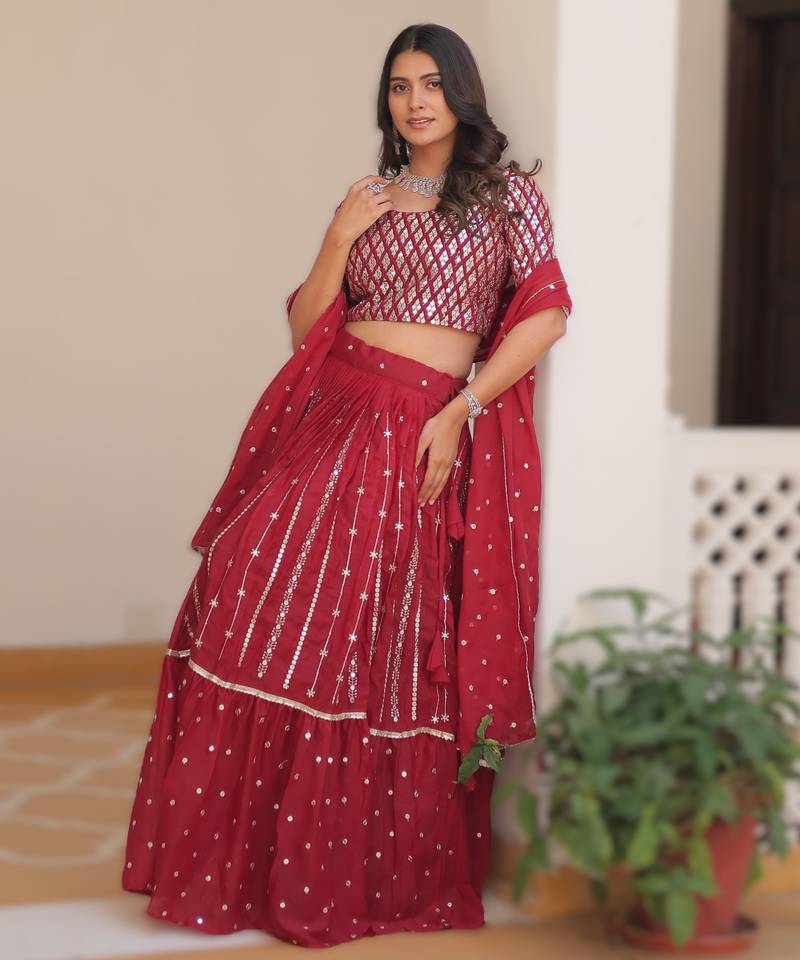 Red elegant pure star georgette embroidered choli lehenga set with heavy sequence work & dupatta