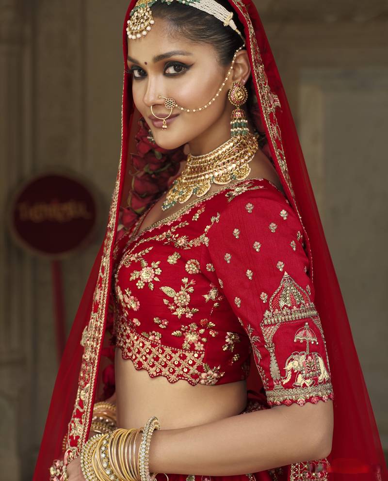 Product Name | Red Premium Silk Bridal Lehenga With Hand Embroidery & Zarkan Work For Wedding | |