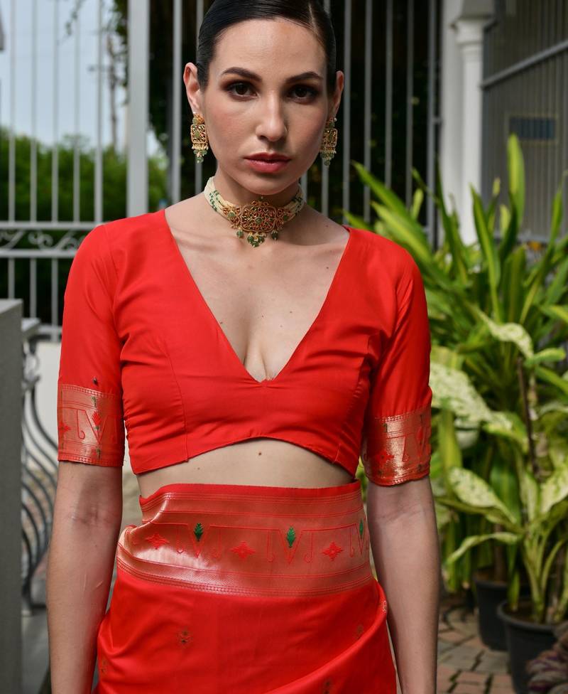 | • | Blouse | : | Color- Red / Fabric- Banarasi Silk |