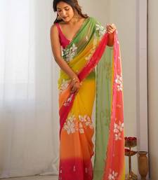 Rich georgette art silk saree with beautiful multi-tone embroidery work – supreme quality with banglori art silk blouse