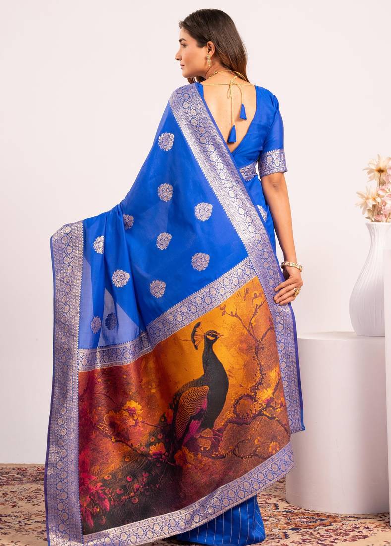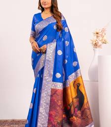 Royal blue extraordinary banarasi silk saree with resham weave peacock pallu & zari border
