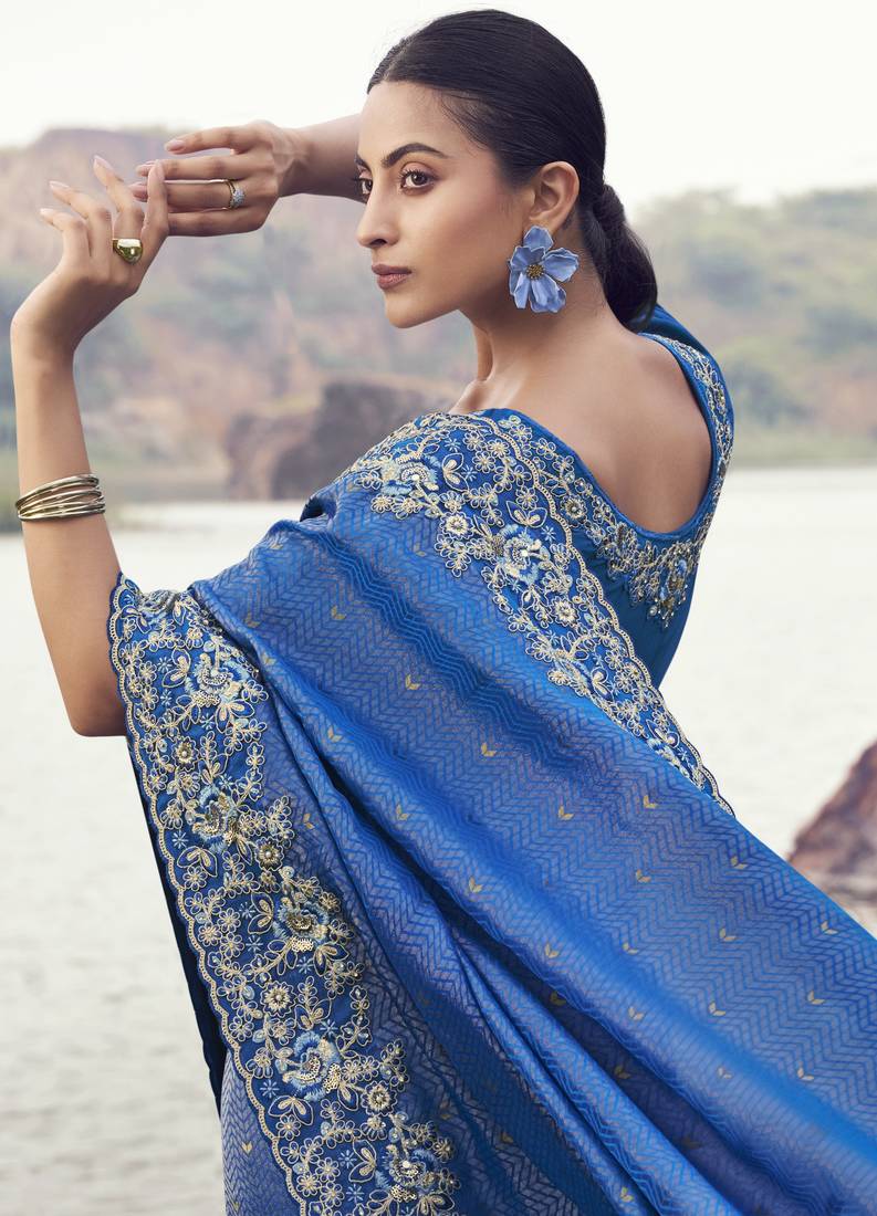 | Product Description | This Elegant Royal Blue Satin Silk Jacquard Saree From The Varenya Collection Is Crafted For Premium Festive And Wedding Wear. The Rich Jacquard Weave And Pure Satin Blouse Enhance The Luxurious Drape, Making It Ideal For Receptions, Sangeet, And Celebrations. |