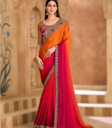 | Embellish | Bright And Beautiful Saffron Satin Chiffon Saree With A Smooth Finish. Includes An Unstitched Banglori Work Blouse, | |