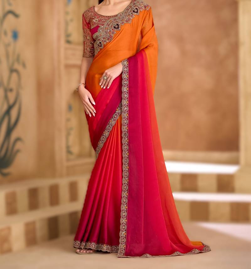 | Product Name | Saffron Satin Chiffon Saree With Banglori Work Blouse | |