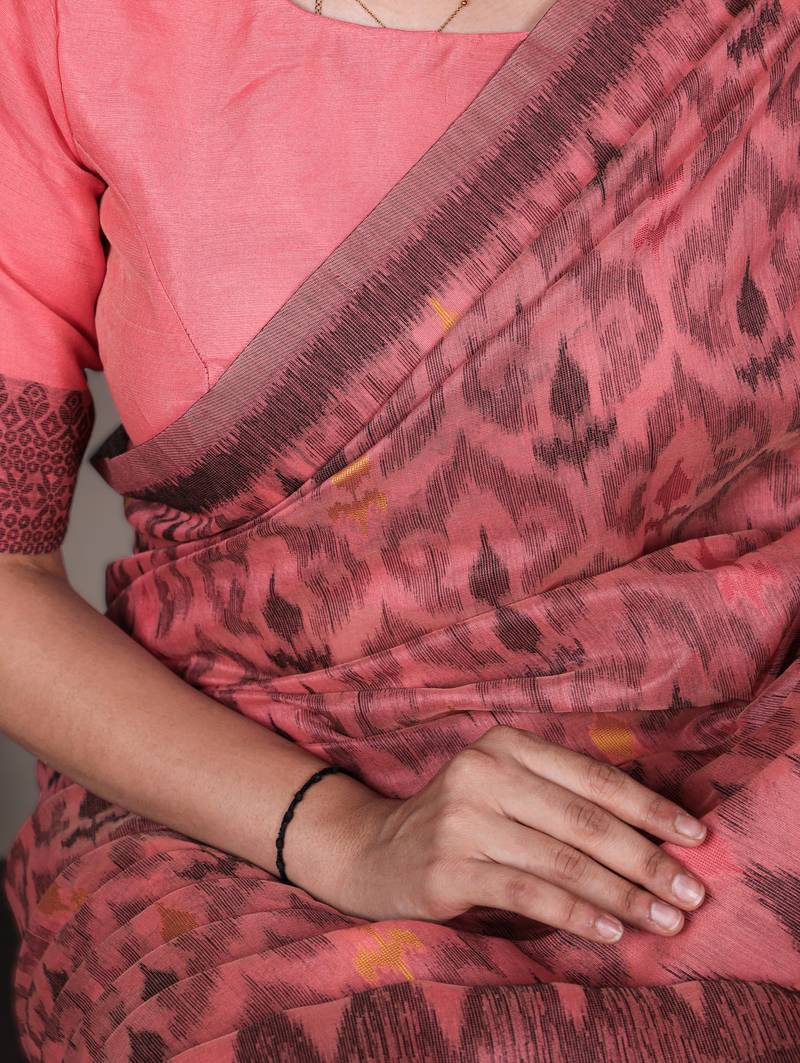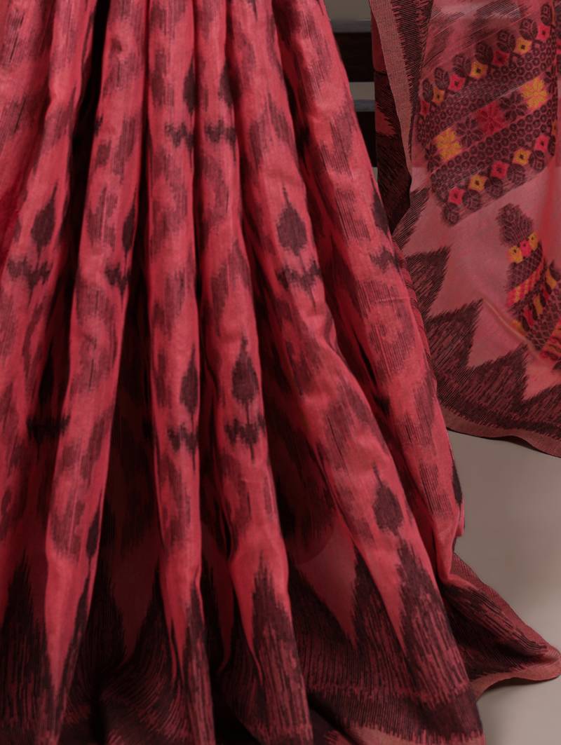 | Product Name | Salmon Poly Cotton Printed Saree With Thread Weaving Work | |