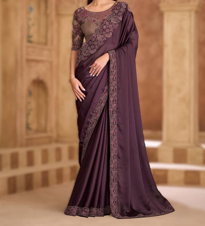 | Embellish | Timeless Satin Chiffon Saree Designed For Elegance And Comfort. Comes With An Unstitched Banglori Work Blouse, | |