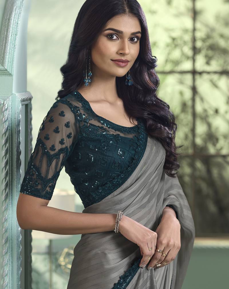 | Product Name | Silver Pattern Georgette Silk Blend Saree – Premium Festive Saree | |