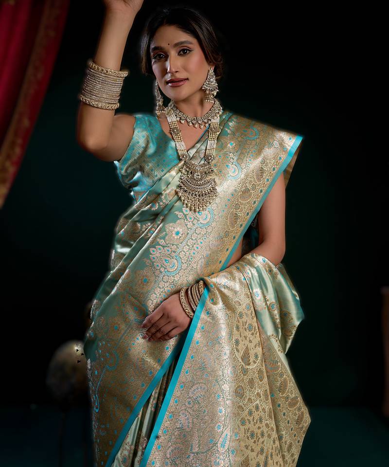 | Product Name | Sky Blue Premium Satin Silk Saree With Stylish Pom Pom Pallu | |