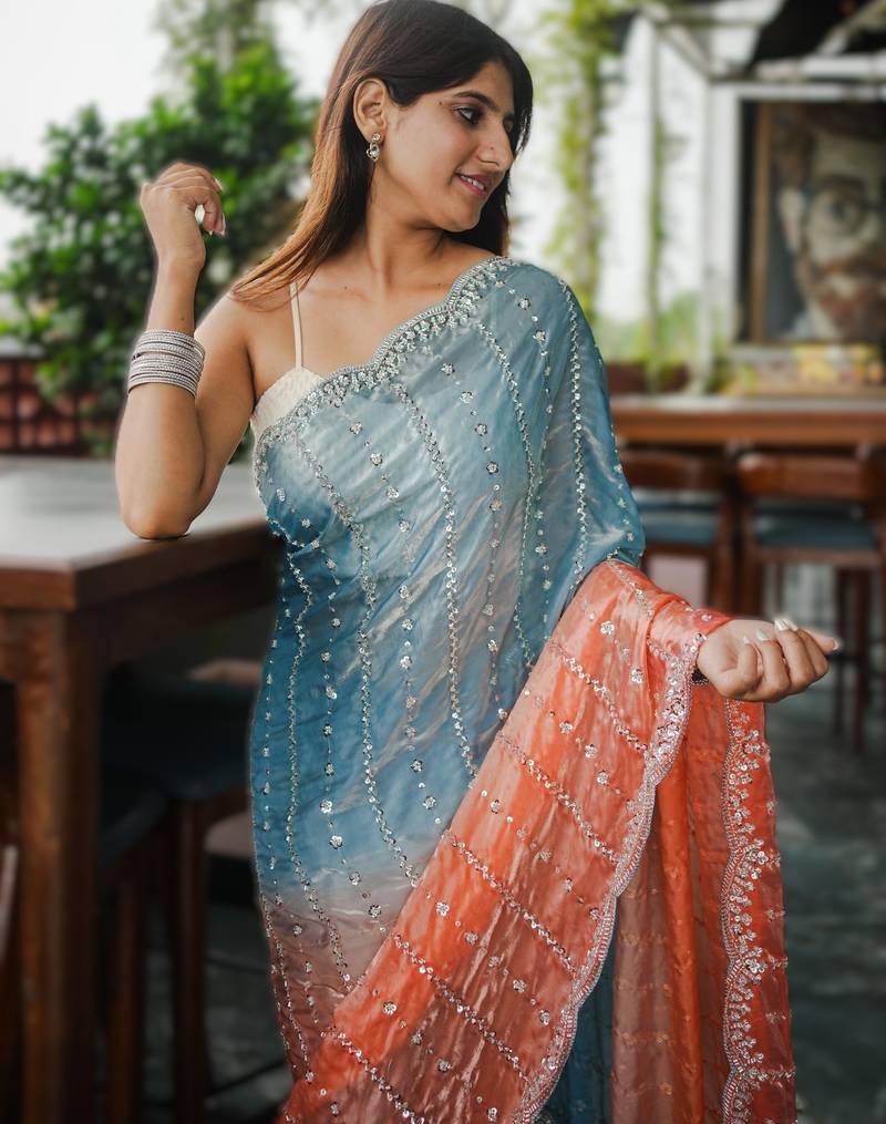 | Product Name | Skyblue Party Wear Saree With Original Gold Beads Work | |