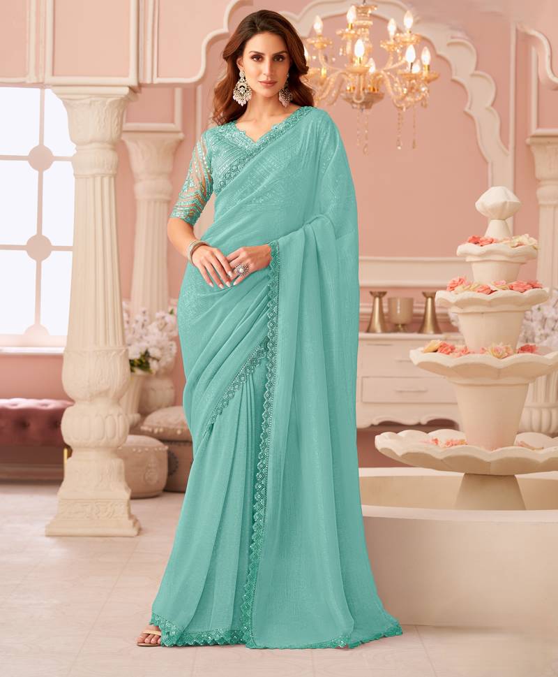 • | Saree | : | Color- Sky Blue / Fabric- Georgette |