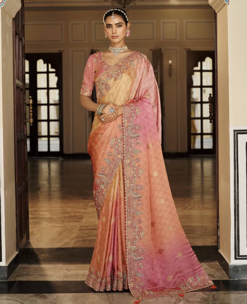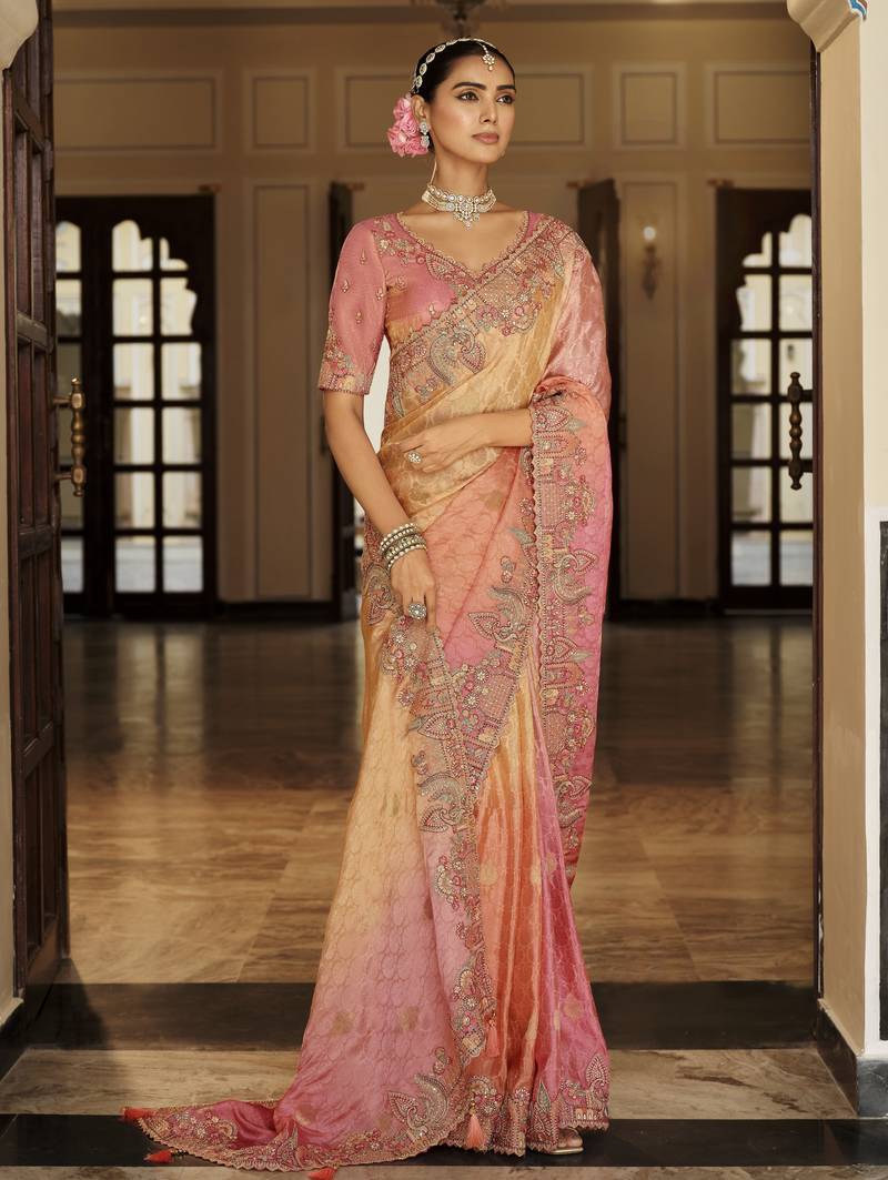 Soft silk zari weaving saree with heavy khatli embroidery party & wedding wear