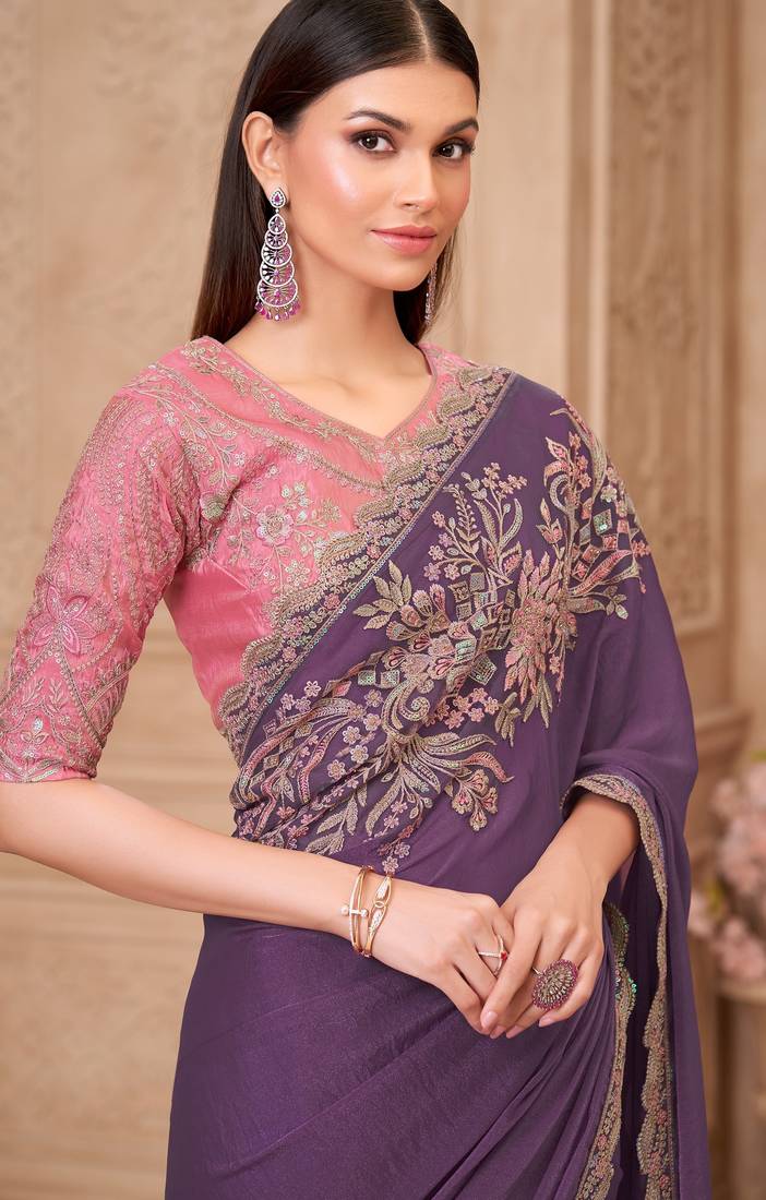 • | Saree | : | Color- Lavender / Fabric- Georgette |