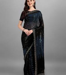 Teal heavy georgette designer saree with double run sequins embroidery & satin lace border