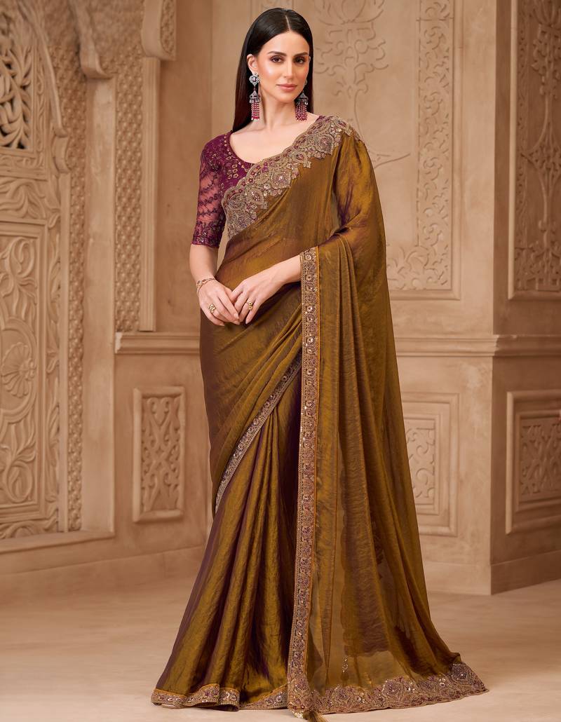 • | Saree | : | Color- Copper / Fabric- Georgette |