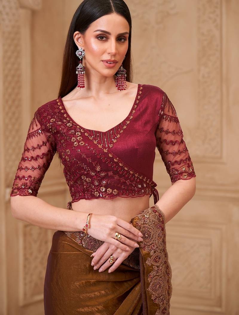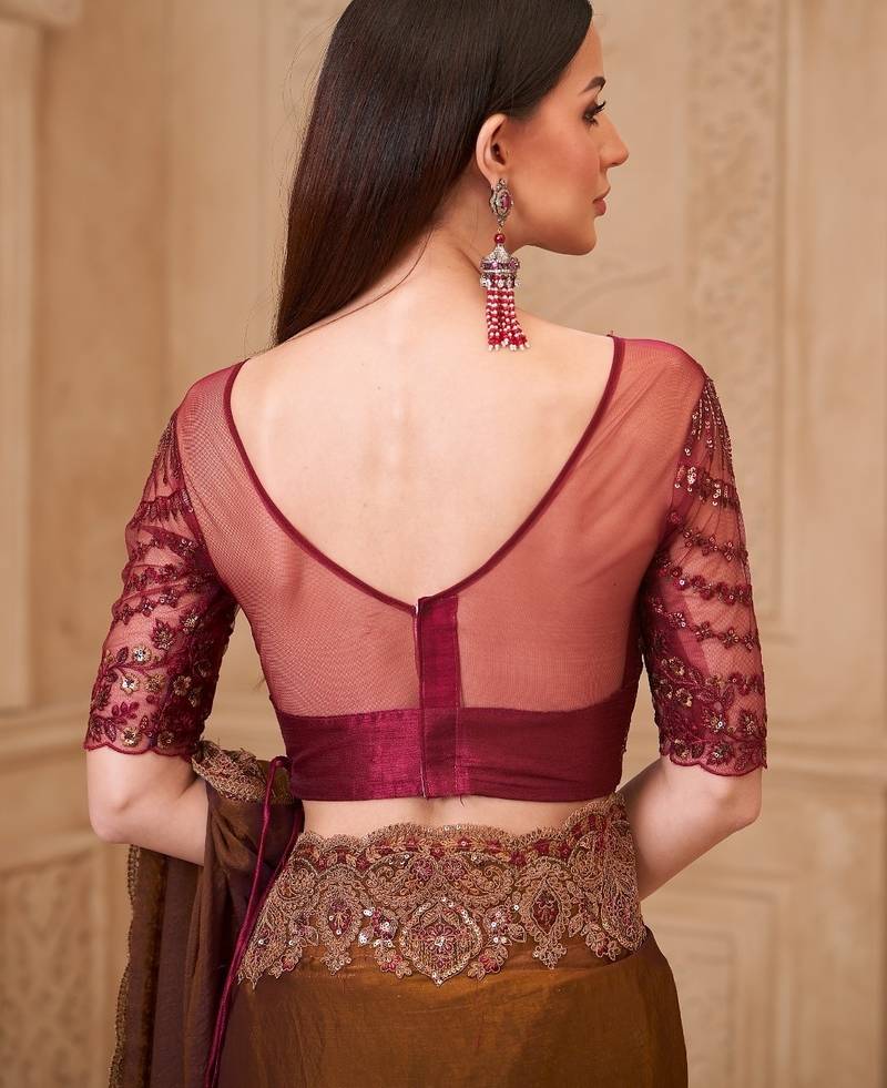 • | Blouse | : | Color- Wine / Fabric- Silk Blend |