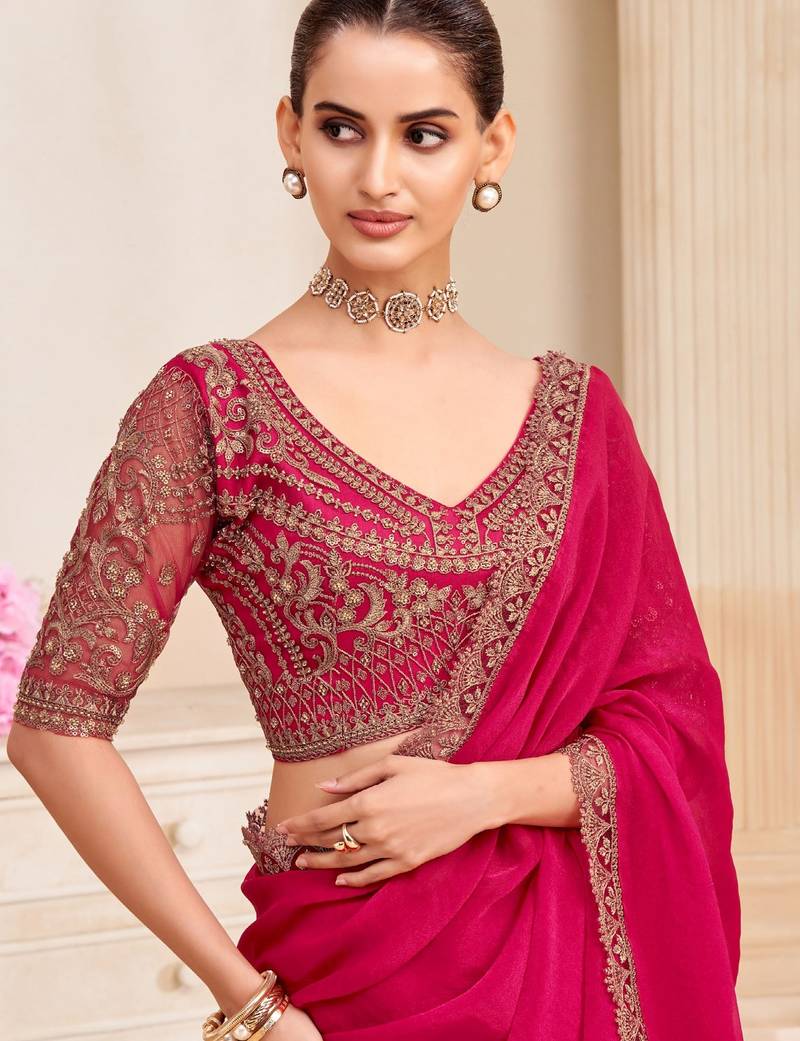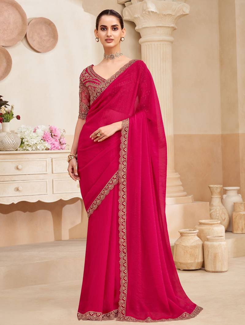 | • | Saree | : | Color- Rani Pink / Fabric- Shimmer |