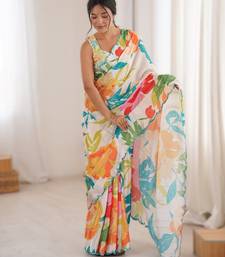 | Product Name | White Heavy Chinon Printed Saree With Mirror Work Border | |