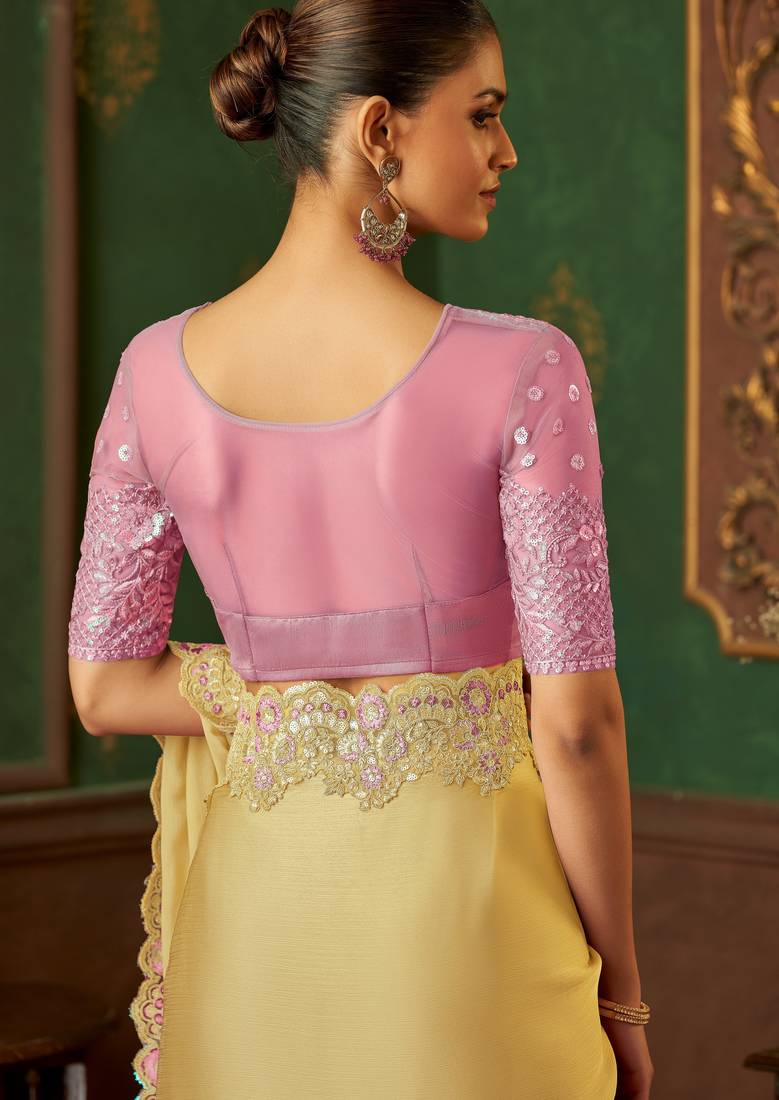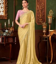Yellow heavy chiffon silk blend saree with embroidery with unstitched blouse