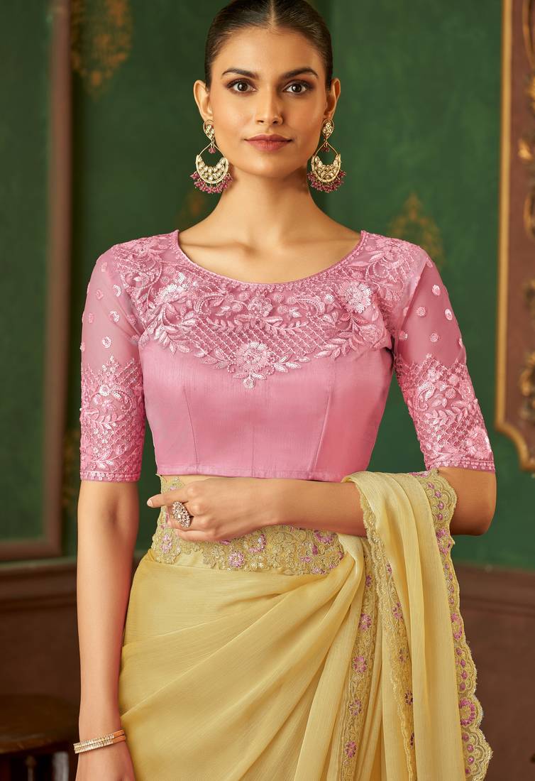 Product Name | Yellow Heavy Chiffon Silk Blend Saree With Embroidery With Unstitched Blouse | |