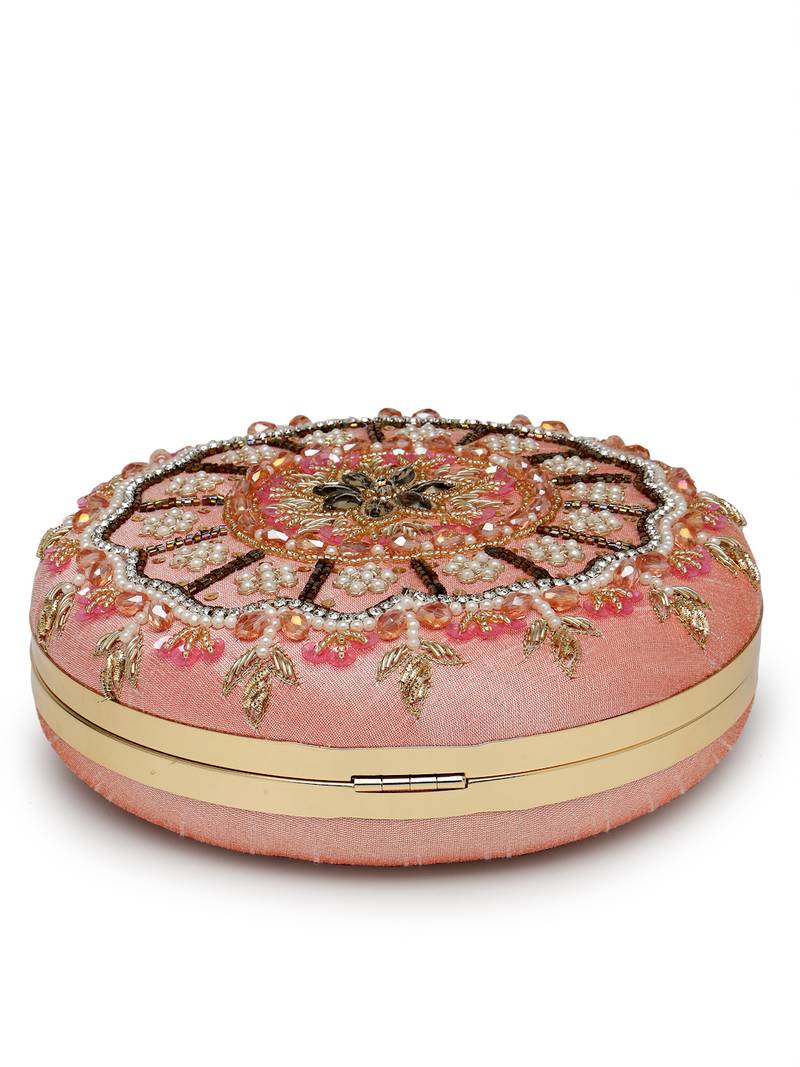 | Product Description | Dusty Coral & Multi Clutch From Anekaant's Adorn Collection. This Box Clutch Is Crafted With The Finest Faux Silk Fabric And Features A Floral Embellished Pattern. Has A Sturdy And Detachable Chain Shoulder Strap. Has One Main Compartment Secured With A Click Closure. Offers Ample Space For All Your Essentials Like Makeup, Keys Etc. Dimensions (Lx Hx W): 18 X 18 X 4 Cm Style: Embellished Adorn Clutch With Click Closure