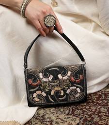 Anekaant beaded botanica black suede swirl embellished clutch