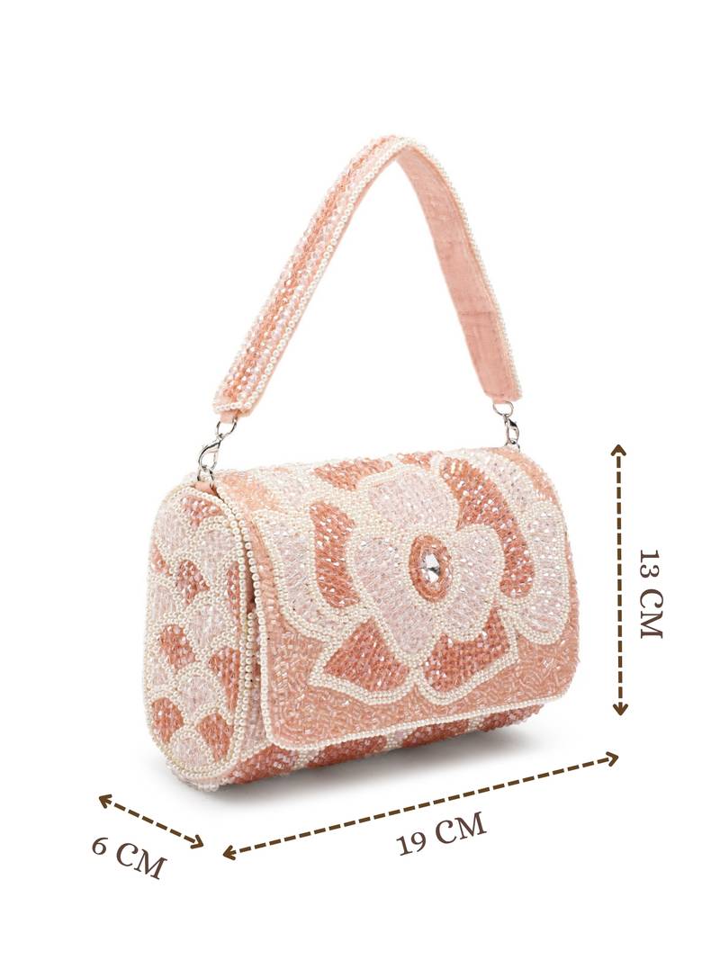 Product Name | Blush & Bead Pink & Pearl White Floral Crystal Beaded Velvet Clutch | |