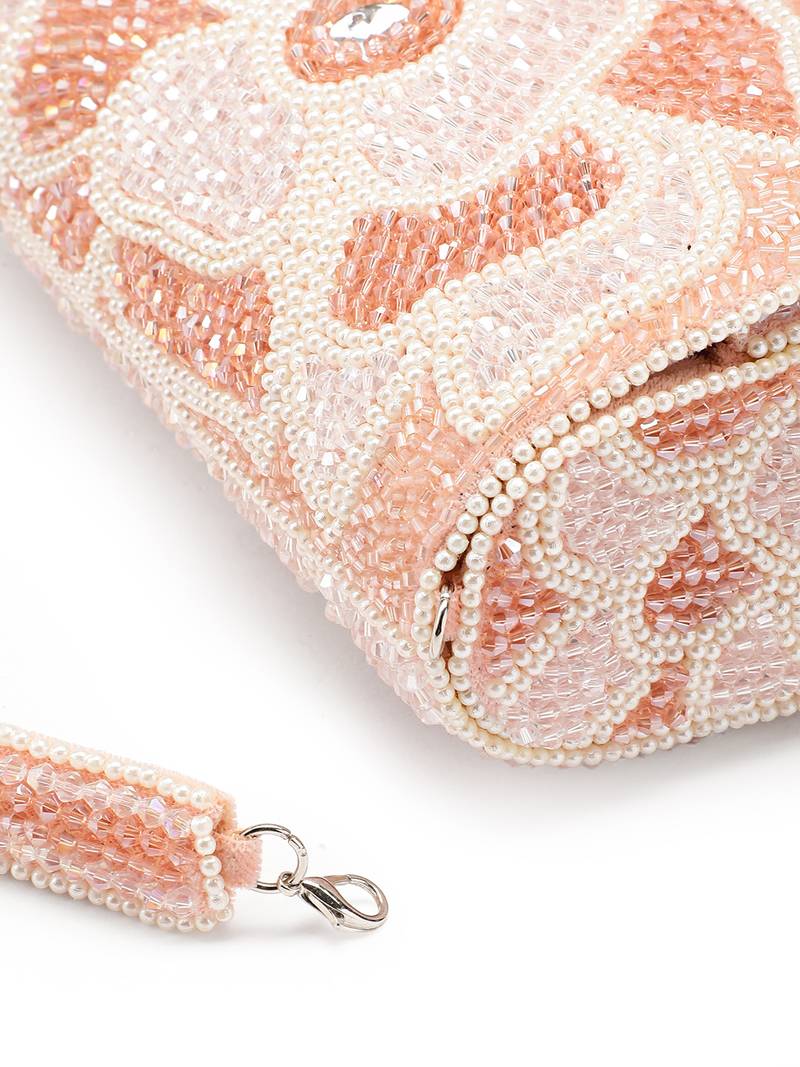 Blush & bead pink & pearl white floral crystal beaded velvet clutch