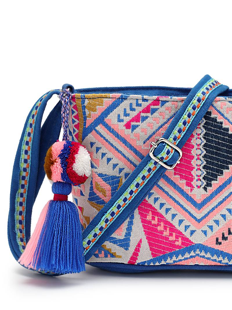 | Product Name | Boho Cobalt Blue Ethnic Jacquard Sling Bag | |