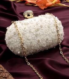 The Anekaant Clutch From The Glided Gleam Collection Is Thoughtfully Designed With A Single, Well Structured Compartment Secured By A Classic Click Closure For Effortless Use. Featuring An Elegant Ivory Base Enhanced With Sparkling Silver Detailing, It Brings A Refined Glow To Party And Evening Ensembles. Crafted Using A Premium Faux Silk Base Layered With Embellished Net Fabric And Complemented By A Plush Velvet Lining, This Clutch Offers A Luxurious Look And Feel. The Design Is Elevated With A 3 D Floral Embellished Pattern, Created Using Layered Sequins, Beads, And Crystal Accents To Add Rich Texture And Dimension. Finished With A Detachable Chain Strap, The Clutch Allows Versatile Styling As A Sling Or Handheld Accessory, Making It An Ideal Choice For Parties And Evening Occasions. Dimensions (L × H × W): 18 × 11 × 4 Cm.
