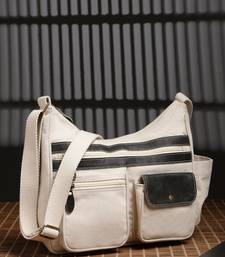 Anekaant timber & thread off white cotton multipocket sling bag