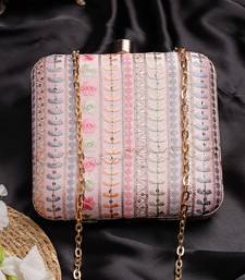 The Anekaant Clutch From The Woven Reverie Collection Is Crafted With One Spacious Interior Compartment Secured By A Sleek Click Lock Closure, Offering A Refined Blend Of Elegance And Functionality. Showcased In A Soft Pastel Pink Base, The Design Is Adorned With Multicolor Embroidery In Gentle Hues For A Graceful, Feminine Appeal. Designed With A Faux Silk Exterior And Finished With An Elegant Velvet Lining, The Clutch Delivers A Smooth, Premium Feel. The Surface Features A Delicate Botanical Striped Pattern, Highlighted With Intricate Leaf And Floral Threadwork That Adds Subtle Texture And Artisanal Charm. Completed With A Detachable Chain Strap, This Clutch Allows Elegant Styling For Wedding Occasions And Special Events. Dimensions (L × H × W): 16 × 16 × 5 Cm.