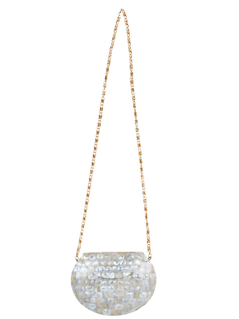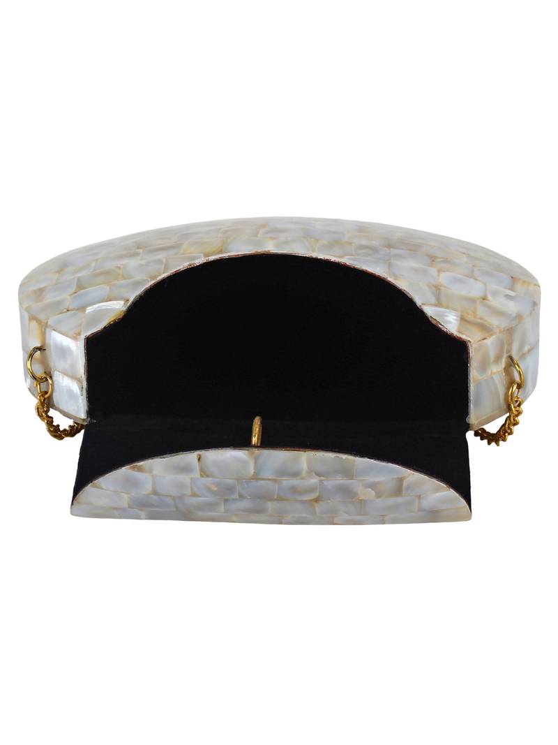 | Product Description | White Hand Crafted Designer Mosaic Marble Stone Clutch. It Has One Main Compartment With Clasp Closure And A Detachable Metal Chain. Can Also Be Used As A Sling Bag. |
