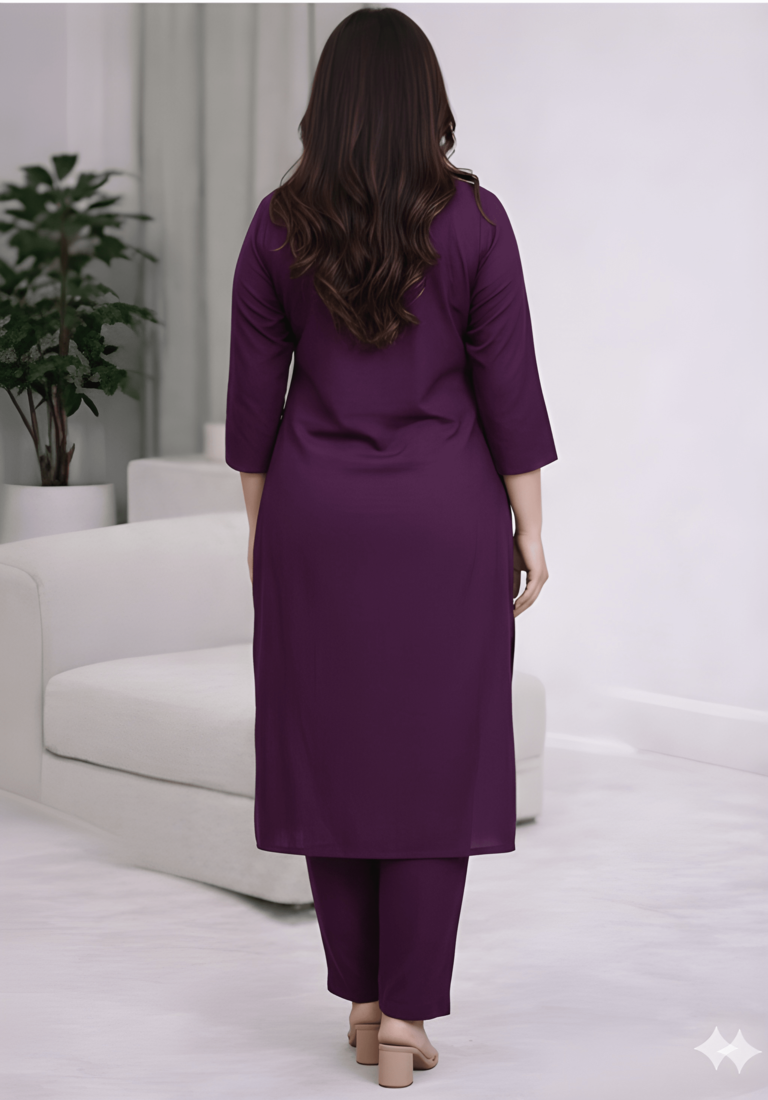 Elevate Your Ethnic Wardrobe With This Sophisticated Brown Kurta Set That Combines Style And Comfort Effortlessly. The Ensemble Features A Beautifully Designed V Neck Kurta With 3/4 Sleeves, Crafted From Smooth Rayon Fabric That Ensures Comfort Throughout The Day. The Straight Cut Silhouette Offers A Contemporary Look While Maintaining Traditional Charm. Paired With Matching Palazzo Pants, This Set Creates A Balanced And Graceful Appearance Perfect For Both Casual And Semi Formal Occasions. The Rich Brown Colour Makes It Versatile For Various Styling Options, While Practical Features Like The Comfortable Fit And Durable Construction Make It A Wardrobe Essential. The Kurta's Length And Cut Provide Elegant Draping, While The Palazzo Pants Offer Ease Of Movement. This Set Is Ideal For Festive Celebrations, Office Wear, Or Social Gatherings Where You Want To Make A Refined Style Statement.