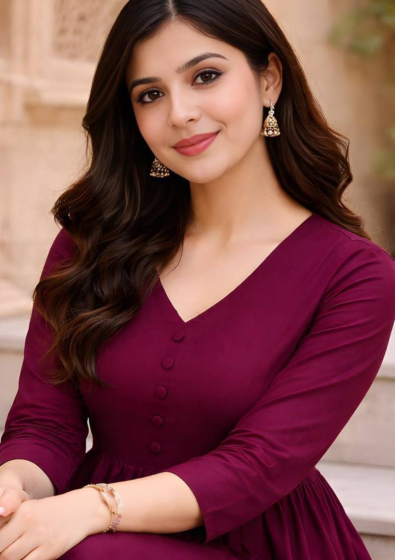 Elevate Your Ethnic Wardrobe With This Sophisticated Olive Green Anarkali Kurta And Pant Set. The Kurta Features An Elegant V Neckline Adorned With Decorative Buttons Down The Front, Creating A Refined Look. The Empire Waistline Flows Into Beautiful Pleats That Add Graceful Movement And Volume To The Silhouette. Crafted With Three Quarter Length Sleeves, This Ensemble Offers Both Style And Comfort. The Coordinating Pants Complete The Look With Their Relaxed Fit And Contemporary Appeal. Perfect For Both Casual Gatherings And Festive Occasions, This Set Combines Traditional Design Elements With Modern Styling. The Versatile Colour Palette Makes It Easy To Accessorise, While The Comfortable Cut Ensures Unrestricted Movement Throughout The Day. This Ensemble Is Ideal For Various Body Types And Can Be Styled With Traditional Jewellery And Footwear To Create Multiple Looks.