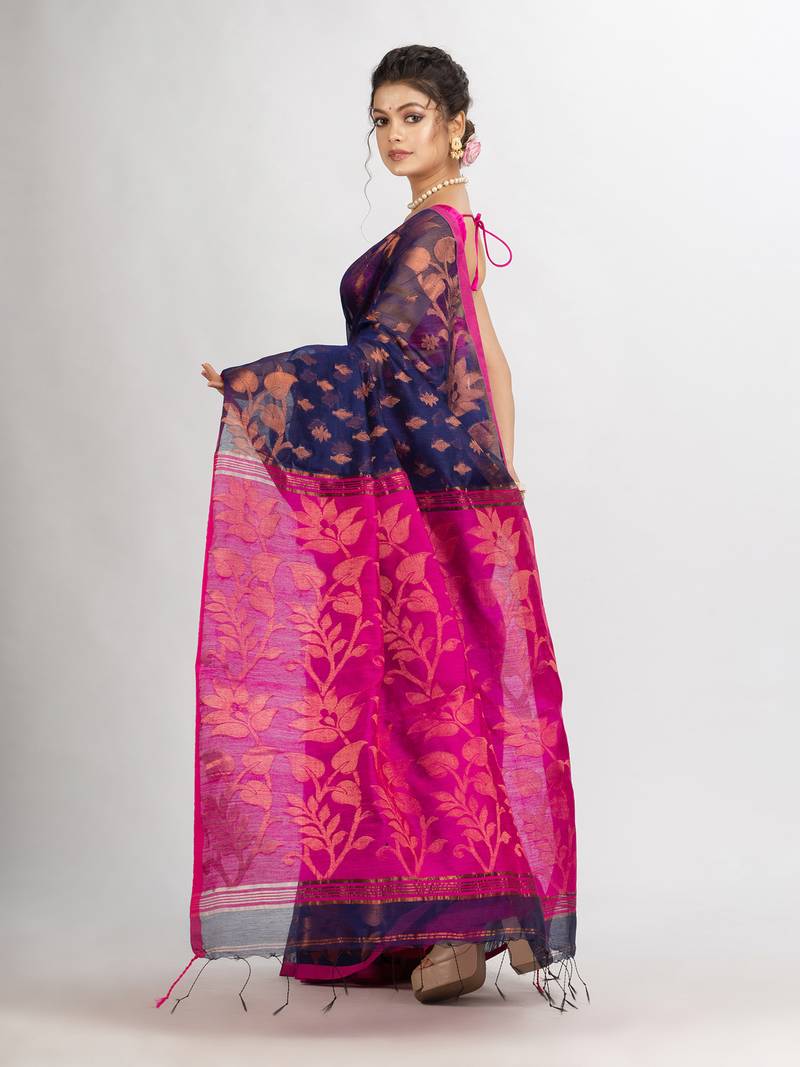 | Product Description | Nevy Blue Cotton Blend Handloom Tangail Saree |