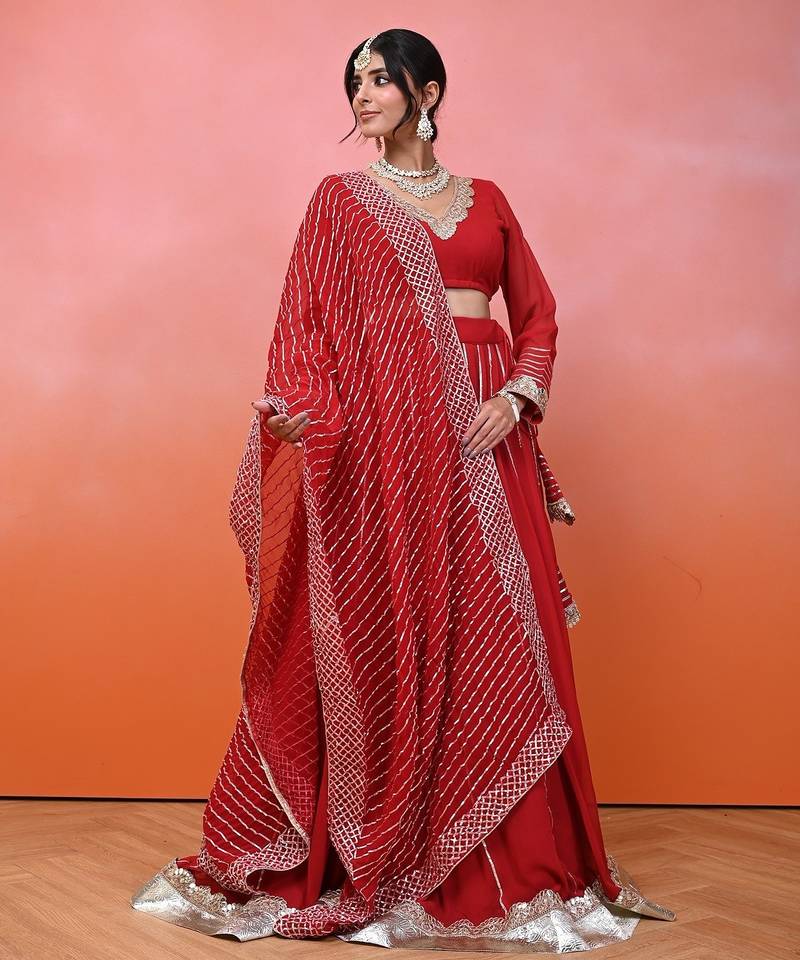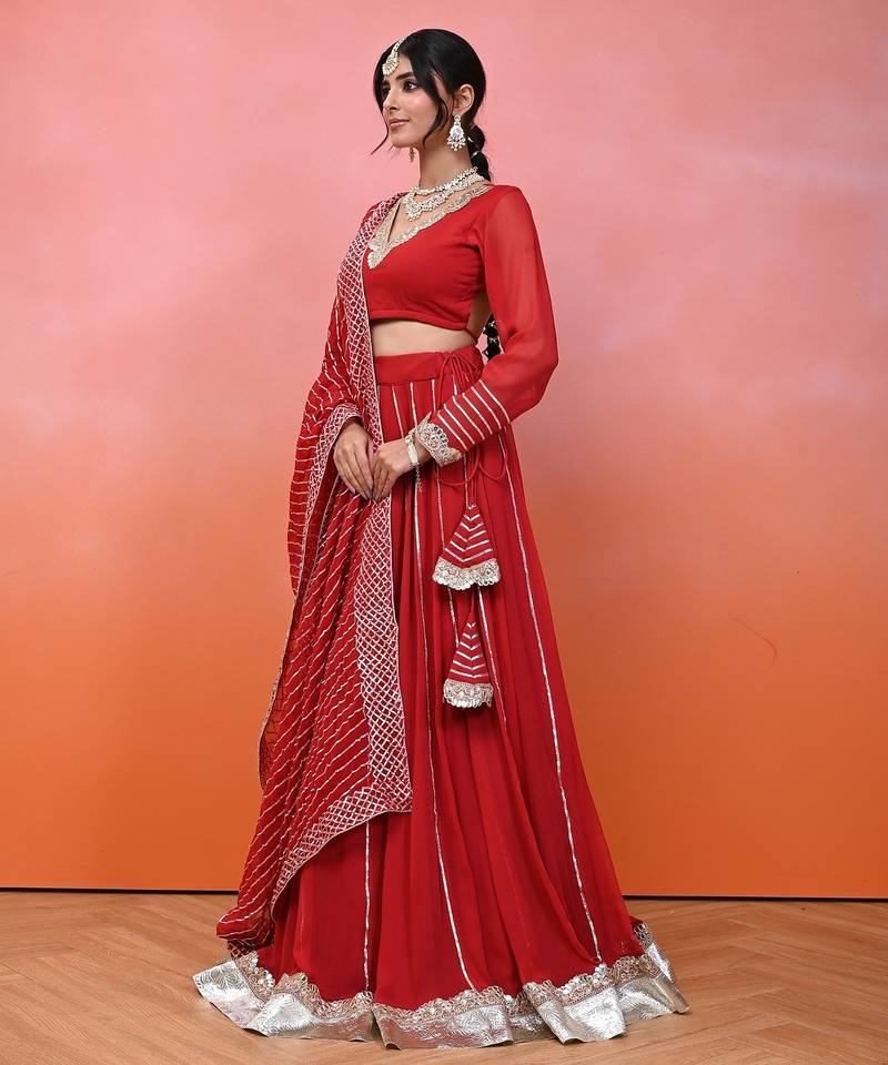 Product Name Red Georgette Gota Lehenga Set With Blouse